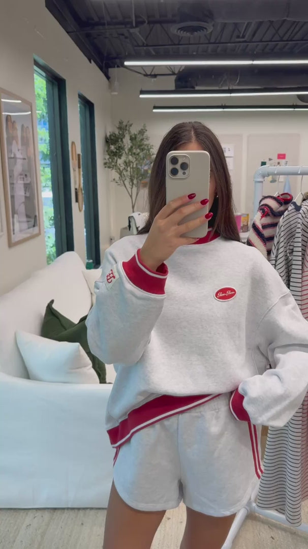 A fresh spin on a timeless staple, this two tone mockneck features a classic light ash gray body with two-tone vintage red trim and chest embroidery. Collegiate energy meets everyday ease.