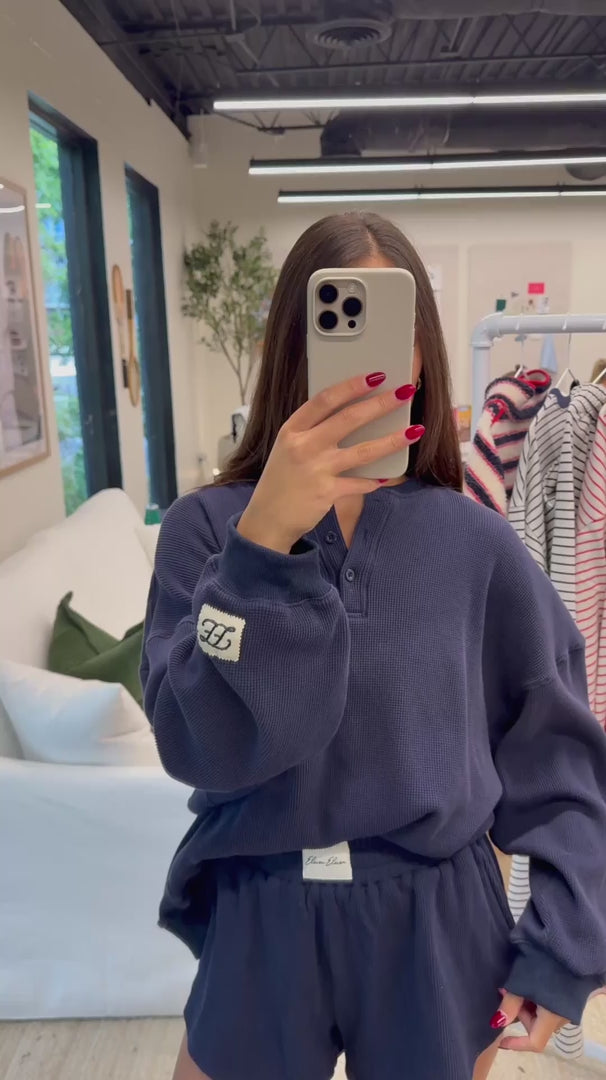A classic made cooler, this waffle knit long sleeve henley comes in subtle collegiate colorways with a relaxed fit that layers effortlessly. The soft, textured fabric feels cozy yet elevated, making it perfect for crisp mornings, study sessions, and everyday wear.